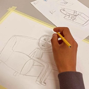 Para estas oficinas Bruno Prates juntou uma equipa composta por Francisco Soares (ilustrador residente da Desenhos do Bruno Academia, licenciado em Arte e Design – Coimbra) e Joana Saramago (ex aluna da DdB.A, atualmente a frequentar o primeiro ano da licenciatura em Conservação e Restauro em Tomar).